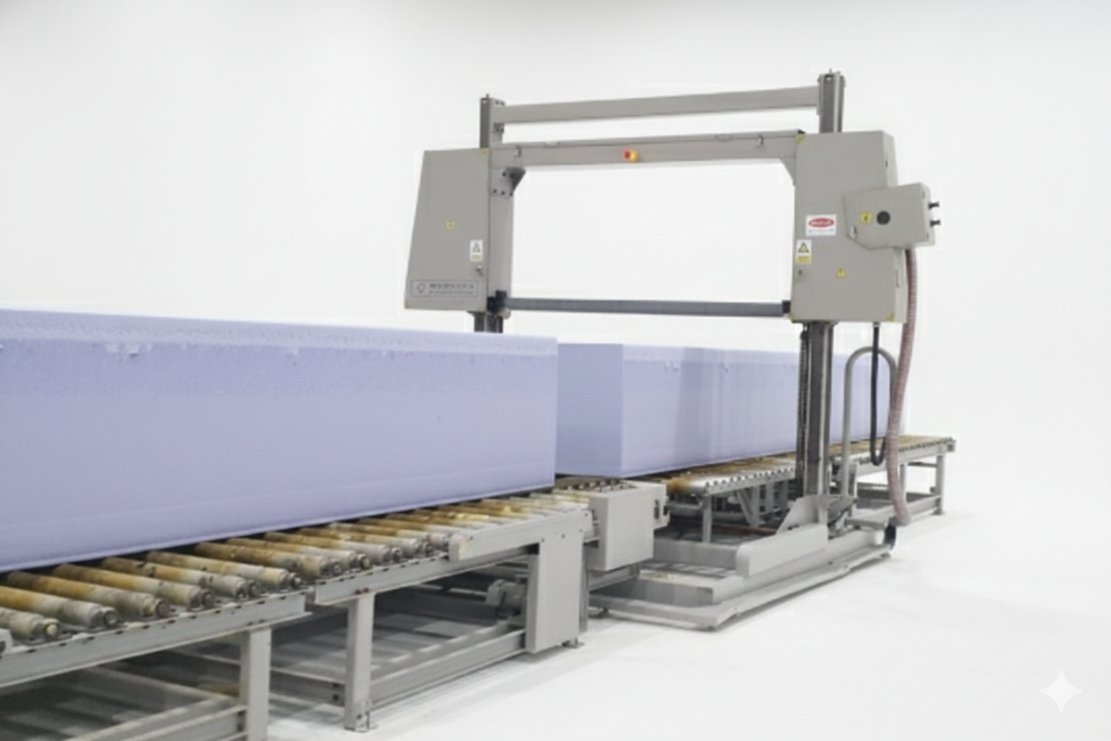 Block Cross Cutting Machine is installed in front of slab foaming machine to cut the long block
