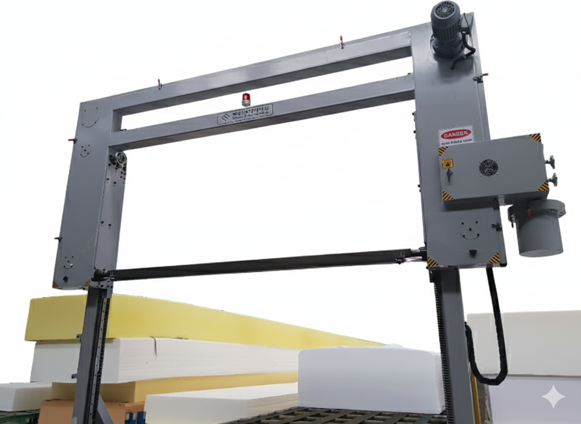 Block Cross Cutting Machine is installed in front of slab foaming machine to cut the long block